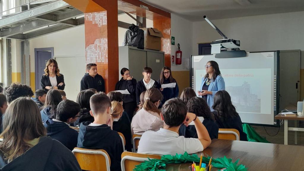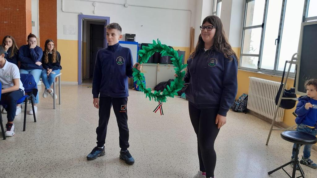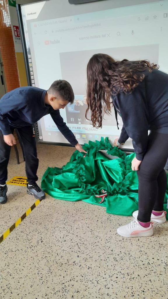 È stata ricreata in succursale la cerimonia celebrativa della Festa dell’Unità d’Italia e delle Forze Armate e,in forma sobria, sono stati resi gli onori al Milite Ignoto, deponendo una ghirlanda in carta crespa e ascoltando il “Silenzio militare. I ragazzi delle classi terze sono stati protagonisti della commemorazione, leggendo uno stralcio di lettera di un soldato dal fronte e il passo relativo al 4 novembre tratto dal romanzo “Terra matta” del nostro concittadino Vincenzo Rabito. Le insegnanti hanno, poi, approfittato per svolgere una lezione aperta riflettendo sulla figura del milite ignoto e sull’erezione dei monumenti ai caduti.