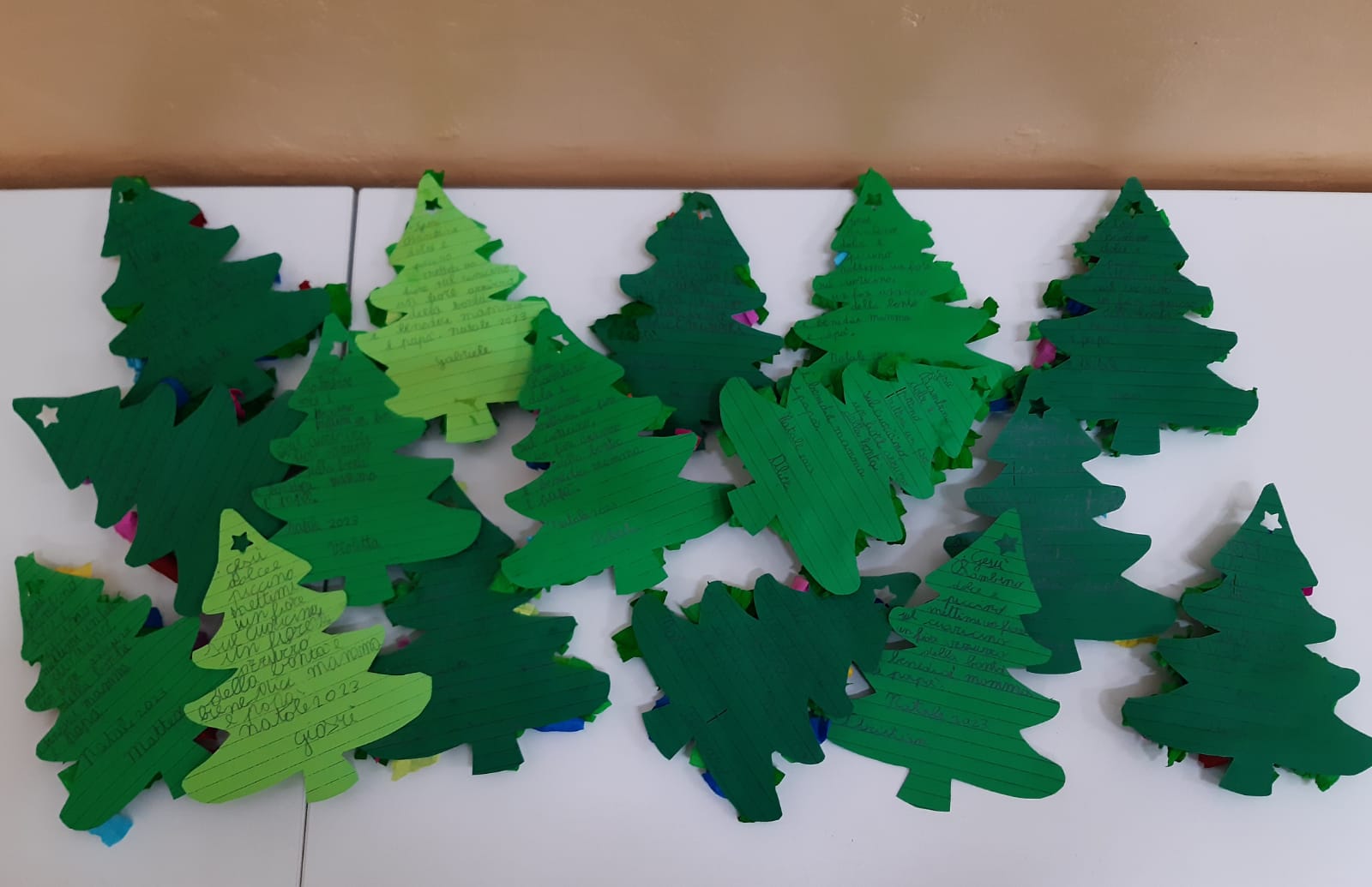 HomeLa nostra voceAlberelli di Natale [Primaria S. Giuseppe – 2A] Alberelli di Natale [Primaria S. Giuseppe – 2A] Categorie La nostra voce Data: 26/12/2023 Gli alunni della 2A del plesso San Giuseppe hanno realizzato un biglietto di Natale a forma di alberello, utilizzando carta crespa e colla. Dietro hanno scritto una poesia dedicata ai propri cari. Comunicazione entrata 3^A e uscita 2^C venerdì 22/12/2023 Il grande coro di bambini dell’Annunziata [Primaria S. Giuseppe]