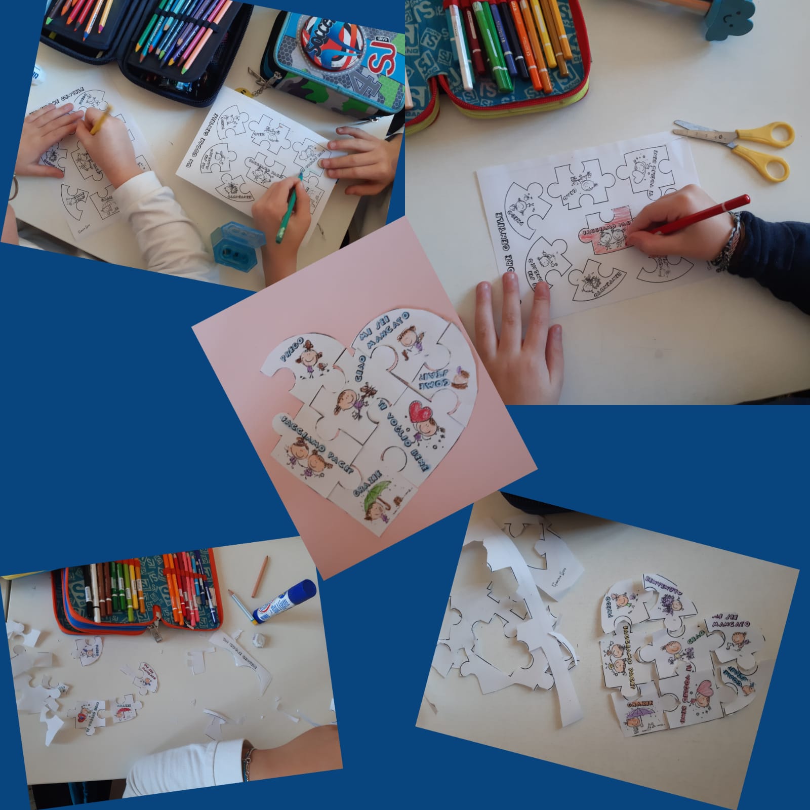 Il 13 novembre, Giornata della Gentilezza, gli alunni della 3’A della scuola primaria plesso San Giuseppe, hanno riflettuto sul concetto di gentilezza attraverso il cortometraggio “Amare senza porsi limiti” e il video “L’importanza della gentilezza”. Sono stati invitati a pensare e mettere in atto gesti gentili nei confronti dei compagni. Infine è stato previsto un momento creativo con la realizzazione, da parte di ogni singolo alunno, di un puzzle: “Cuore gentile” con l’uso di carta, colori, forbice e colla.