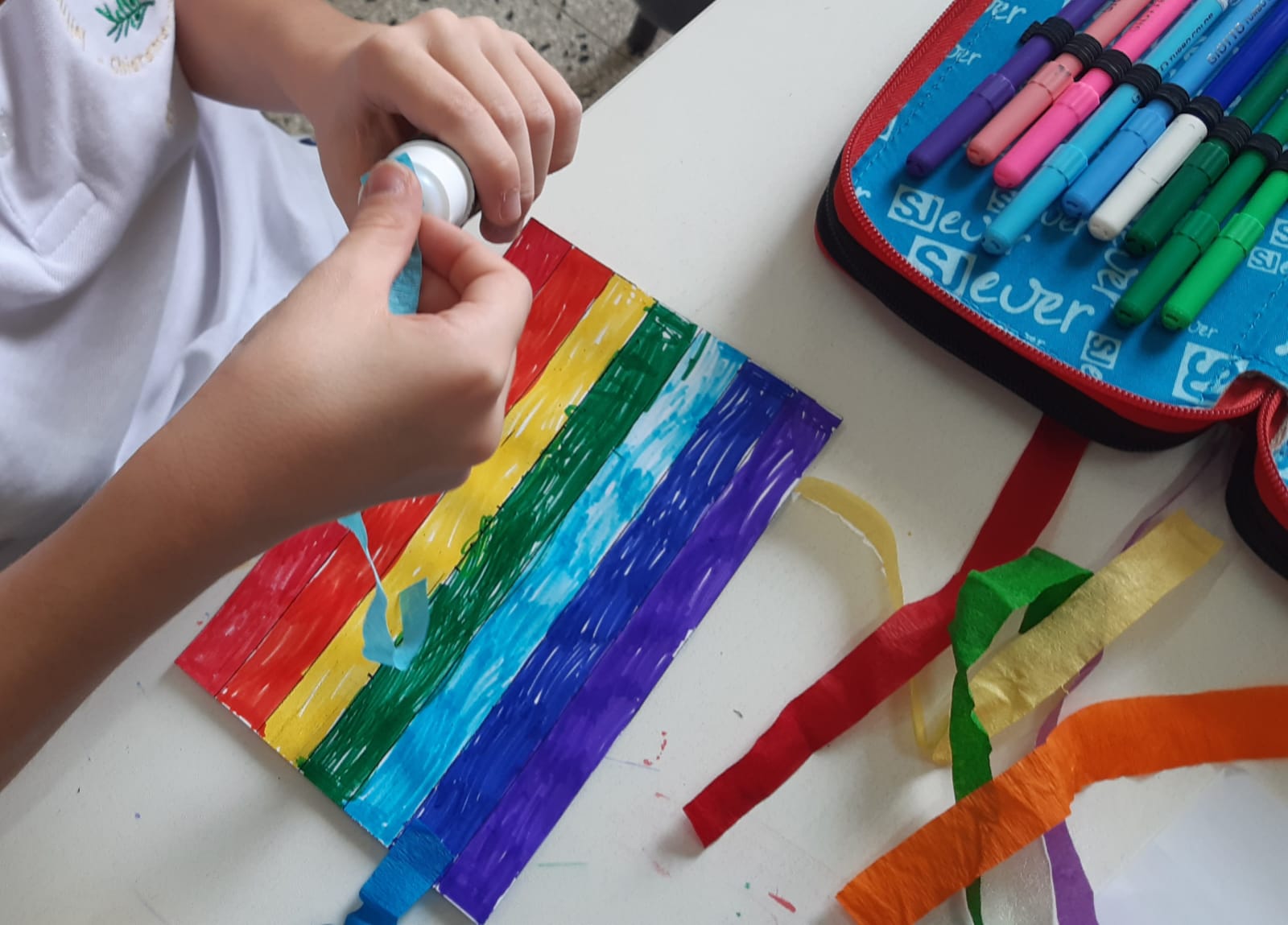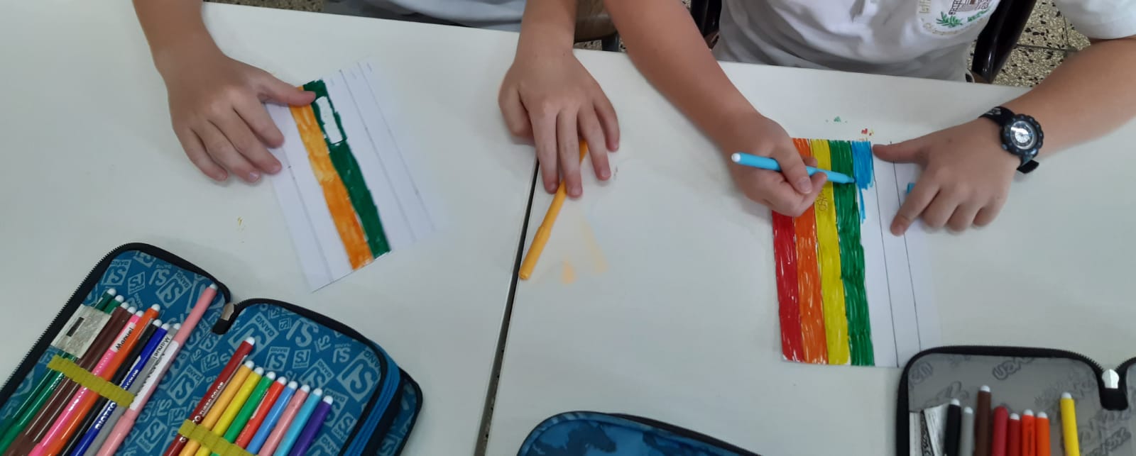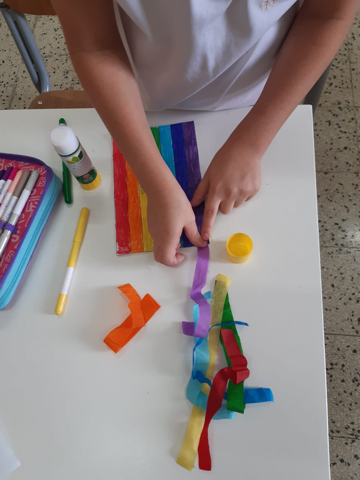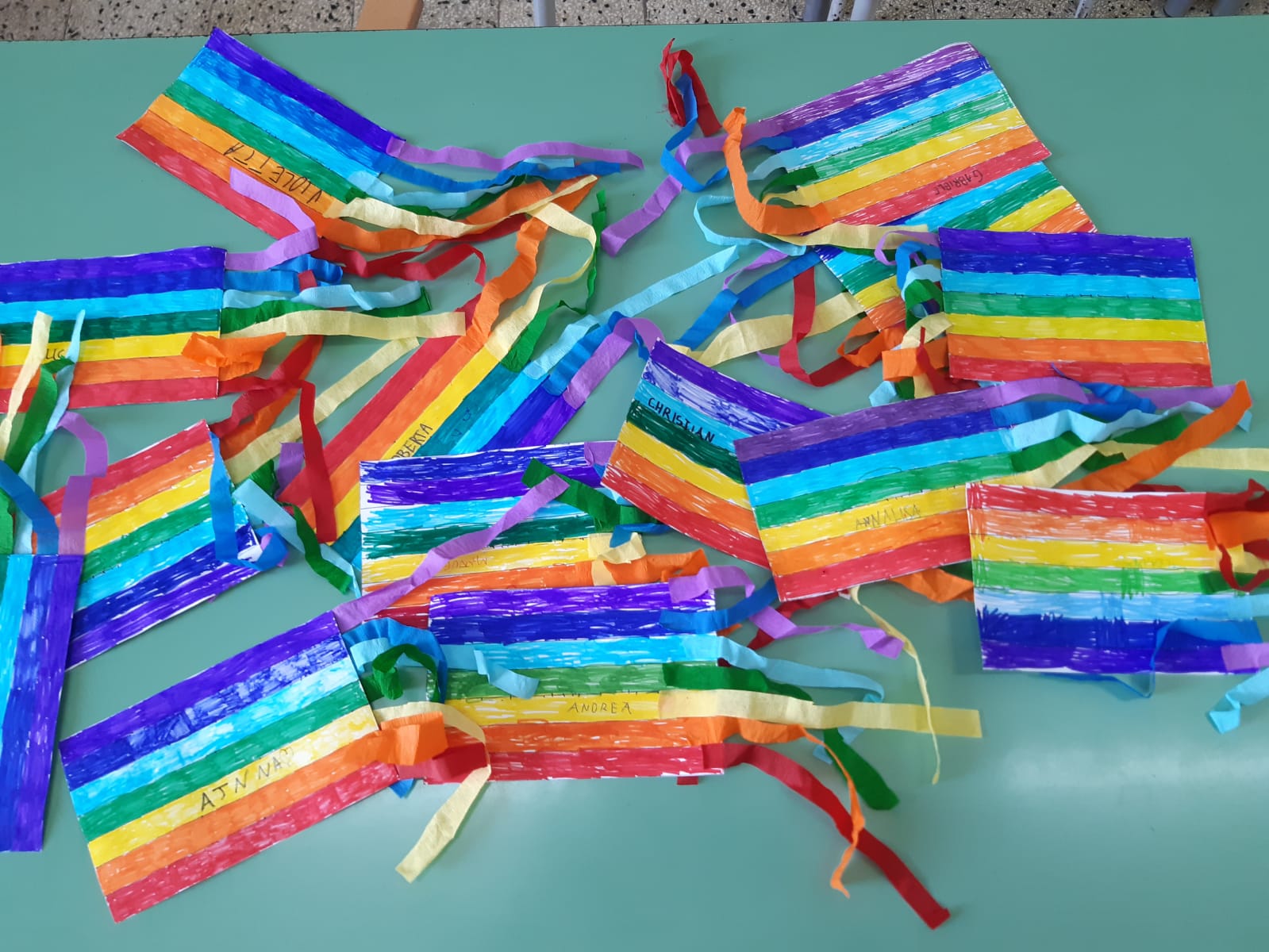 Gli alunni della classe 2A del plesso San Giuseppe, dopo aver discusso in classe sul significato della parola Pace, hanno visto un video sul significato dei colori della bandiera per poi realizzare la bandiera della Pace.