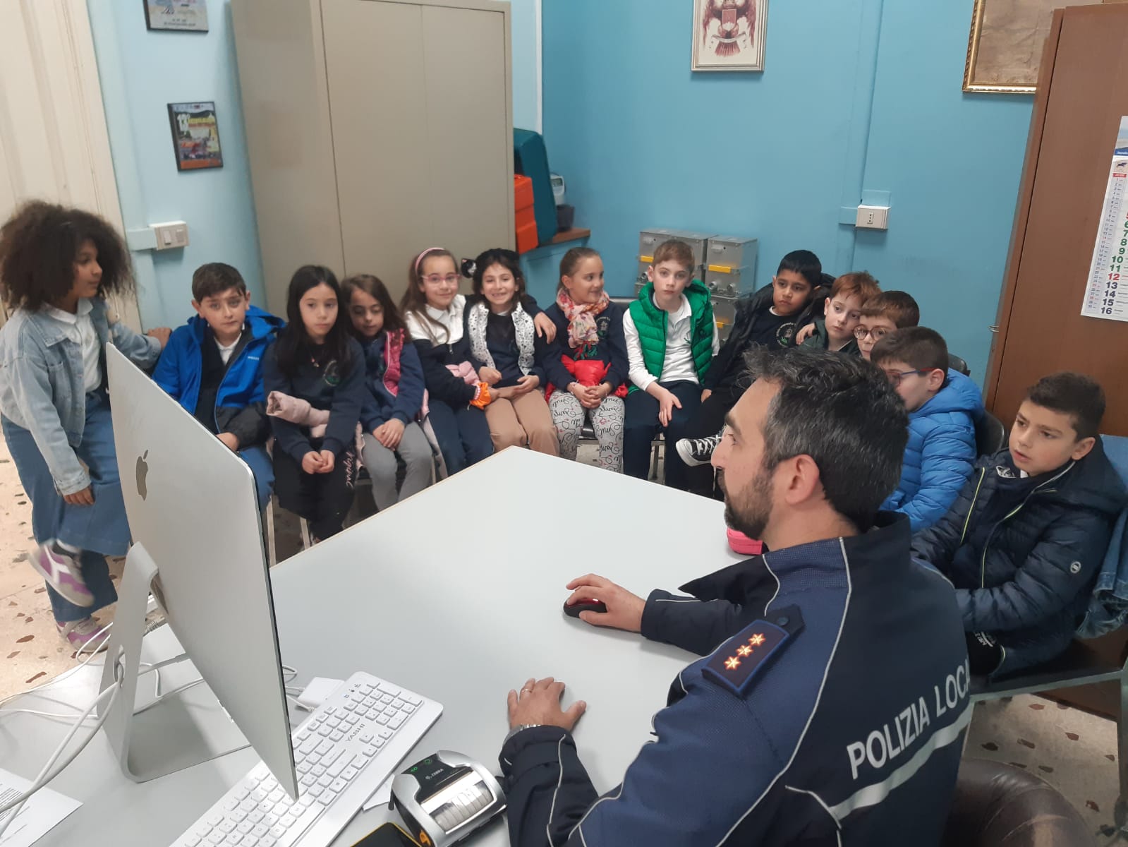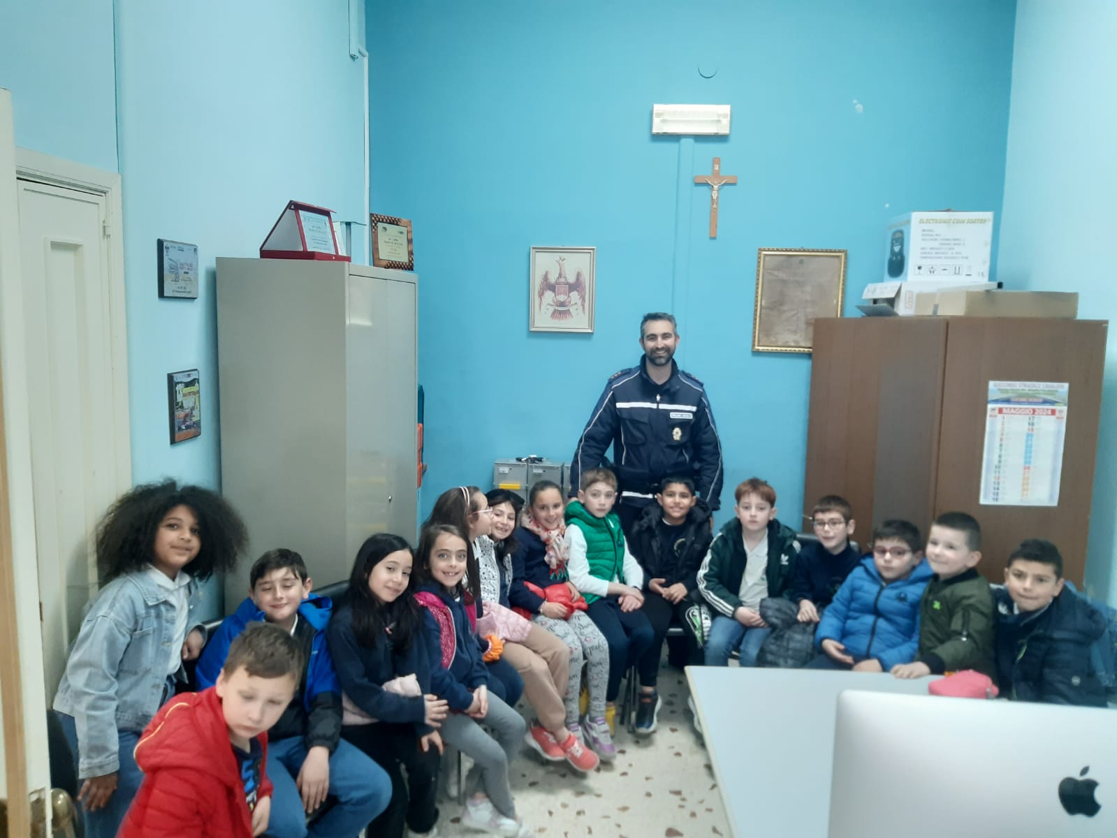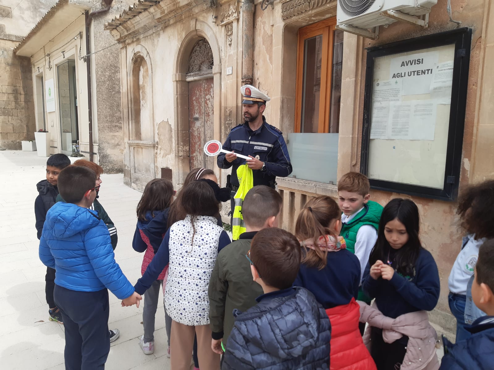 Gli alunni della 2A della scuola primaria del plesso S.Giuseppe si sino recati presso il comando della polizia locale di Chiaramonte. Sono stati accolti dal comandante che ha spiegato il ruolo della polizia municipale e raccontato la storia di “Codicino” per introdurre il codice stradale. Tutti insieme, infine, con in testa il comandante, abbiamo percorso le vie del paese alla scoperta dei segnali stradali. Il comandante ha fatto indossare ad ogni bambino la pettorina dei vigili e con la paletta hanno diretto il traffico lungo un incrocio transitato da alcune macchine.