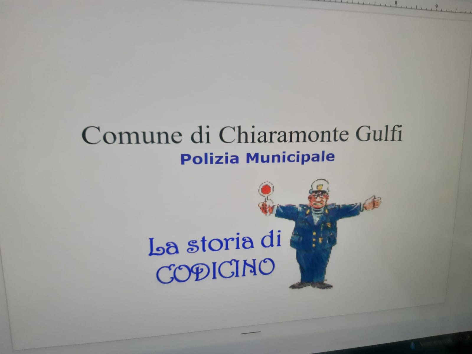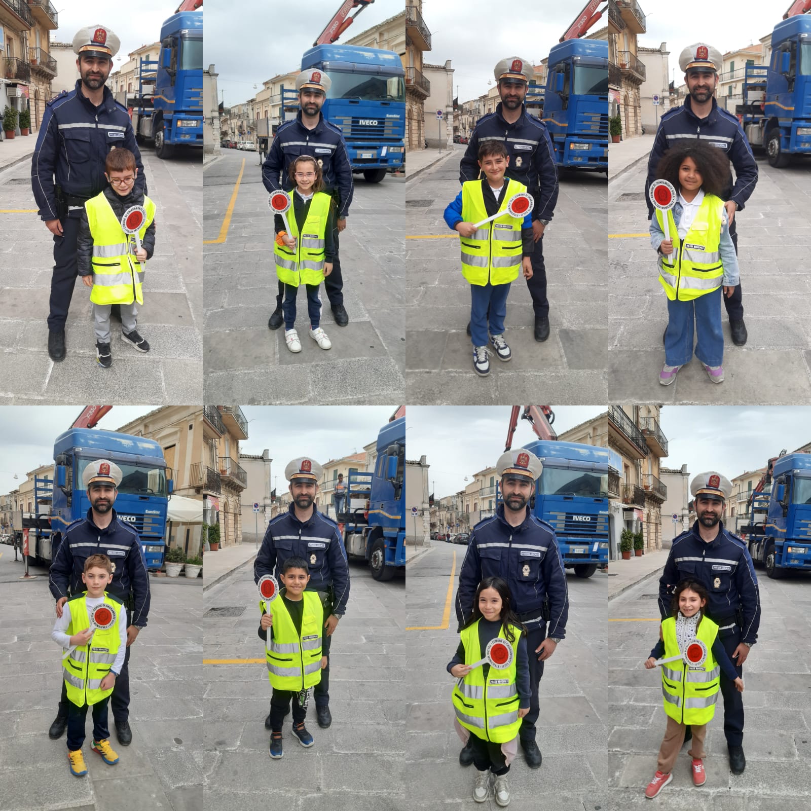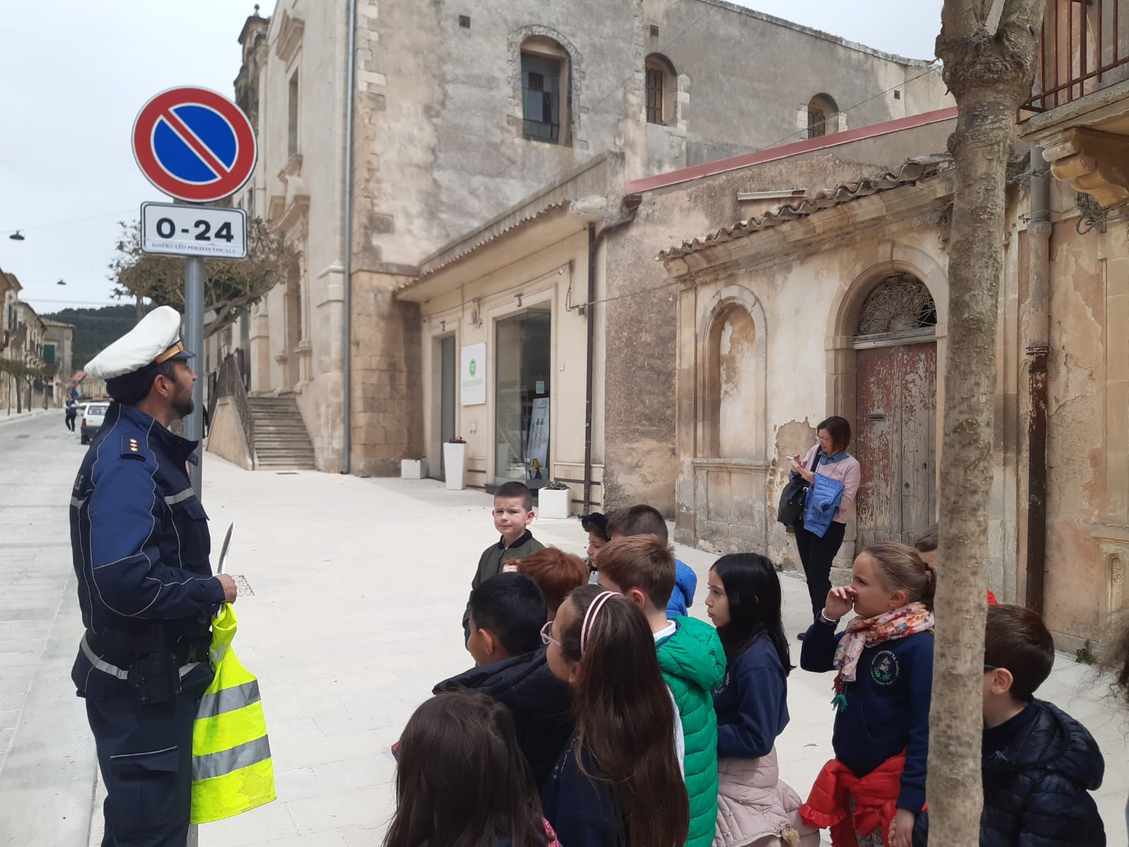 Gli alunni della 2A della scuola primaria del plesso S.Giuseppe si sino recati presso il comando della polizia locale di Chiaramonte. Sono stati accolti dal comandante che ha spiegato il ruolo della polizia municipale e raccontato la storia di “Codicino” per introdurre il codice stradale. Tutti insieme, infine, con in testa il comandante, abbiamo percorso le vie del paese alla scoperta dei segnali stradali. Il comandante ha fatto indossare ad ogni bambino la pettorina dei vigili e con la paletta hanno diretto il traffico lungo un incrocio transitato da alcune macchine.