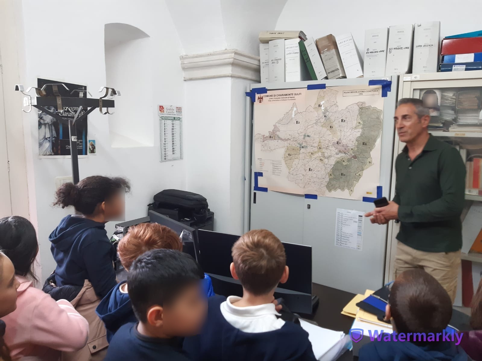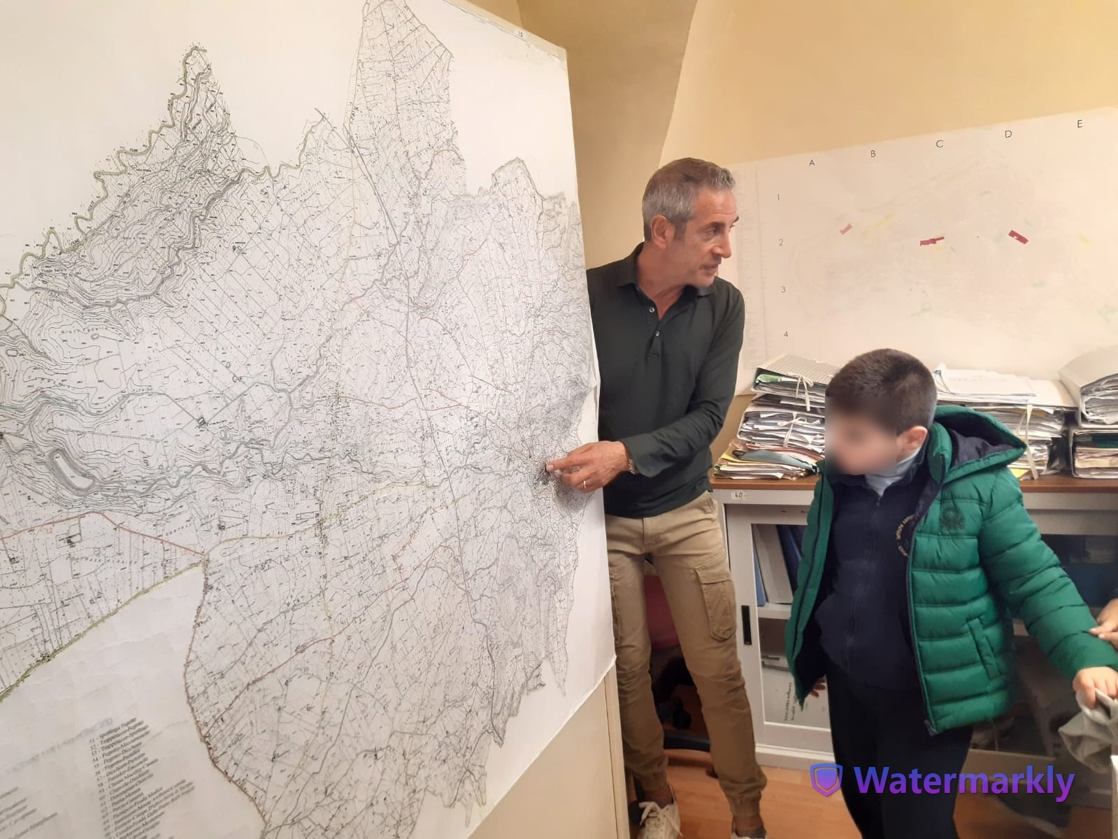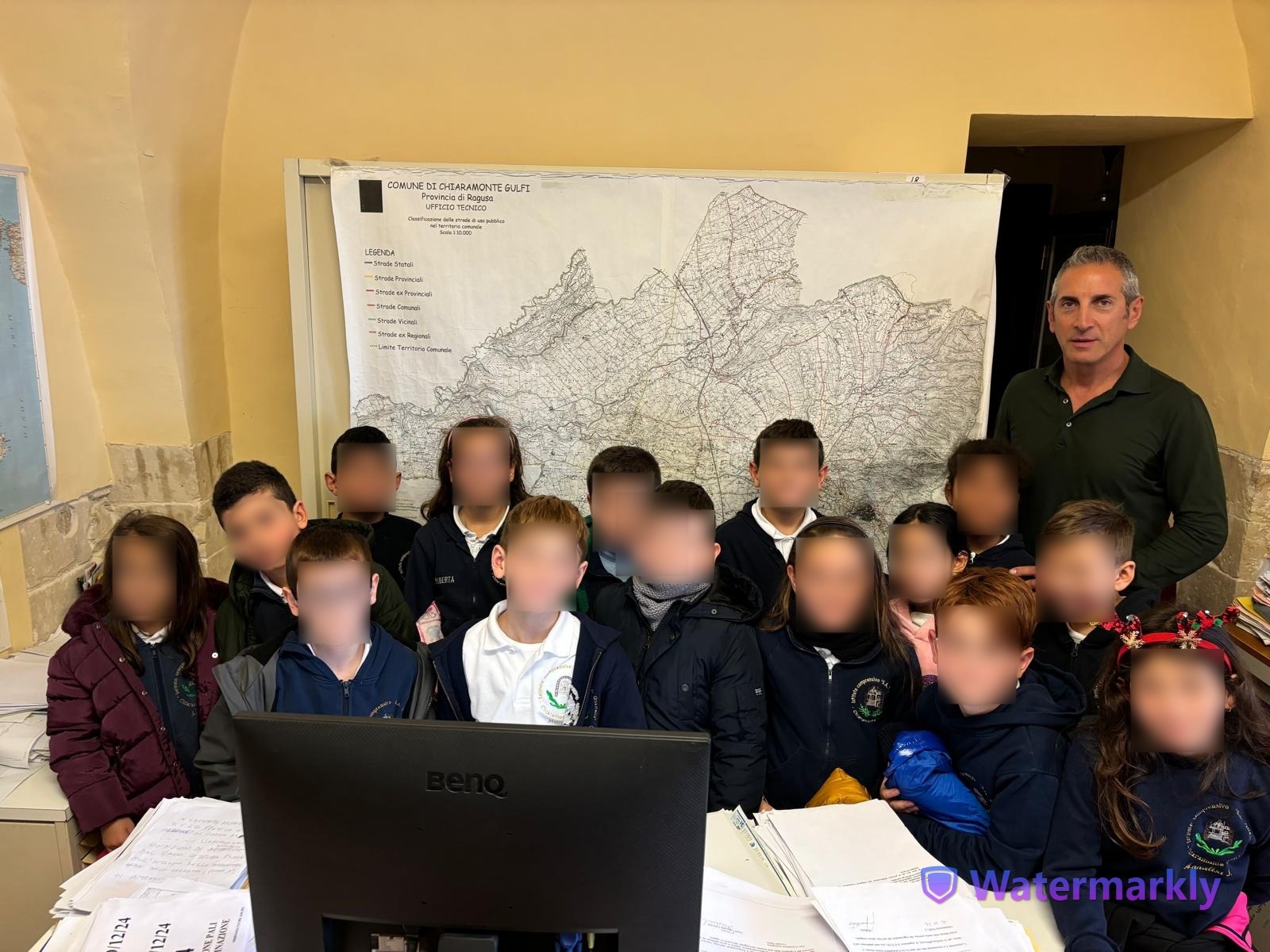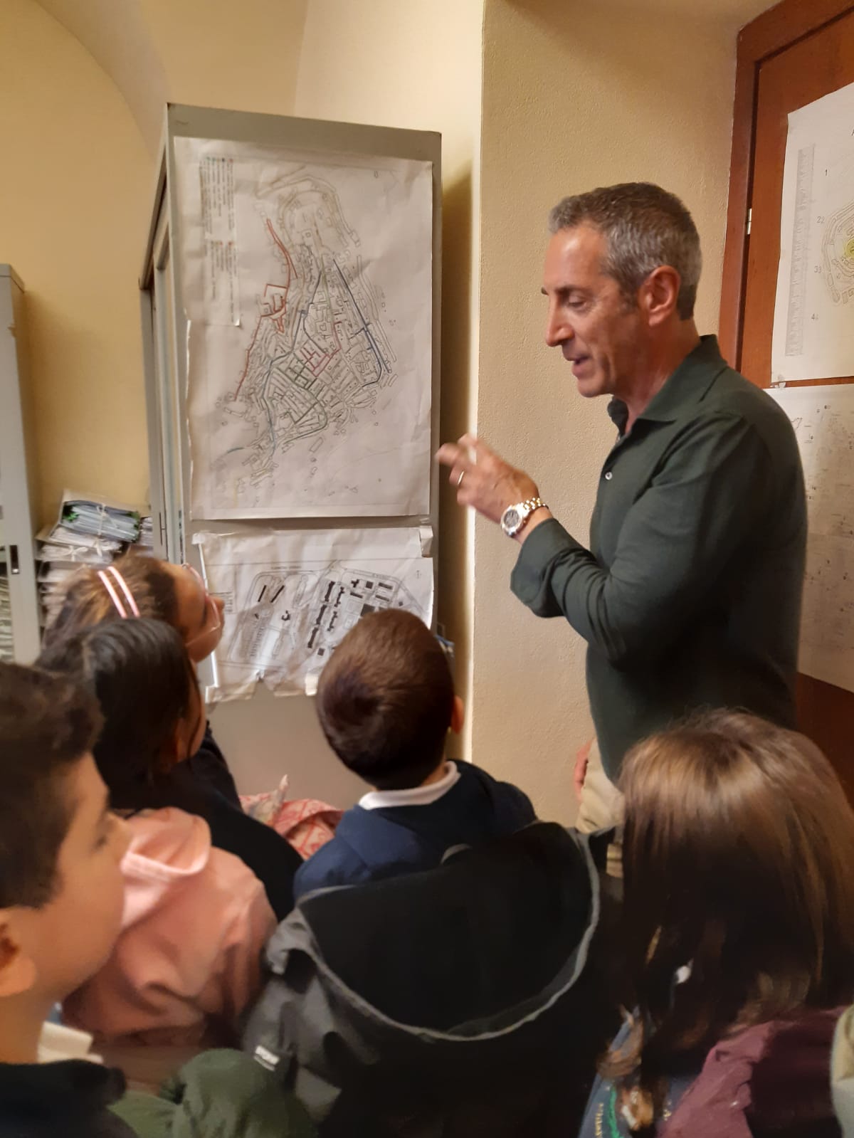 Gli alunni della 3A della scuola primaria del plesso S.Giuseppe, dopo aver studiato in Geografia le carte geografiche, si sono recati presso l’ufficio tecnico del comune di Chiaramonte Gulfi per vedere da vicino le carte del territorio. Gli alunni sono stati accolti dal geometra Maurizio Cannata che ha mostrato alcune carte topografiche di Chiaramonte: sulle strade, sull’illuminazione del territorio, su Villaggio Gulfi, sulla produzione d’olio, sulla provincia di Ragusa,ecc. Inoltre ha mostrato una carta che fa riferimento al piano regolatore del comune. Il geometra Cannata, in ricordo di questa visita, ha regalato la copia della mappa di Chiaramonte ad ogni alunno.