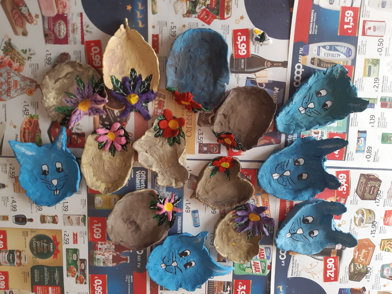 Una Pasqua di colori, creatività e uova….Gli alunni della 2A, della scuola primaria di San Giuseppe, hanno realizzato dei cestini con dei fiori e a forma di coniglietti. Hanno impastato il Das, fatto asciugare e dipinto con le tempere. Per arricchire il tutto sono state messe delle uova di cioccolato ed un bigliettino di Pasqua colorato a matita. Tra le attività pasquali, oltre alla poesia per augurare una Pasqua di pace, gli alunni hanno decorato un grande uovo in panno per decorare la classe e poi è iniziata la caccia alle uova nascoste in classe.
